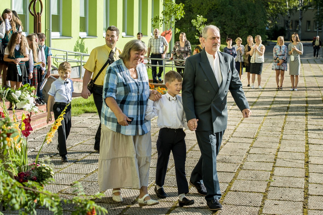 Foto no Zinību dienas 2019. gada 2. septembrī, kad daudzi skolēni turpina savas skolas gaitas, bet skolas gaitas uzsāk 1. klase.